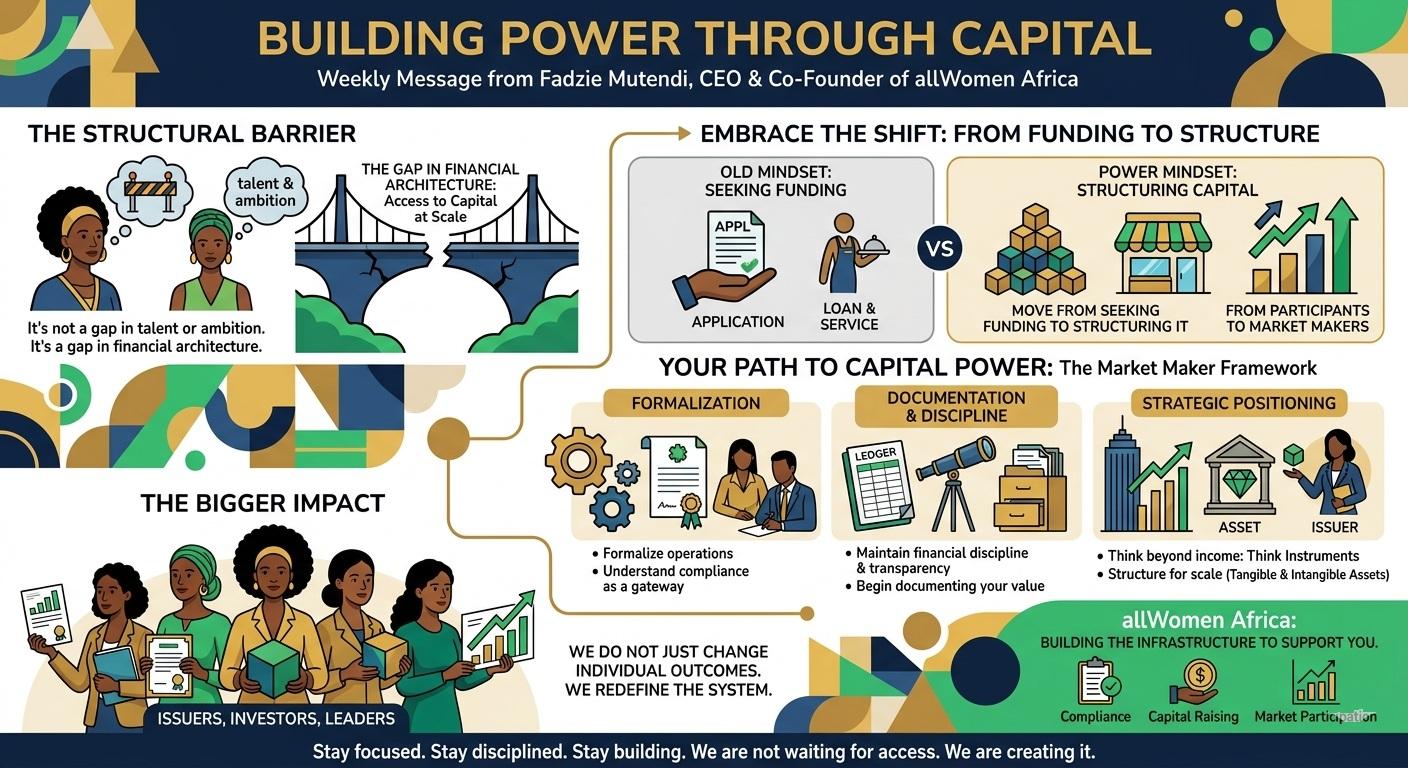At allWomen Africa, we are building the infrastructure to support you in this journey, from compliance and identity, to capital raising and market participation. But the first step is yours: a decision to see yourself not just as a participant, but as a capital holder and capital creator.