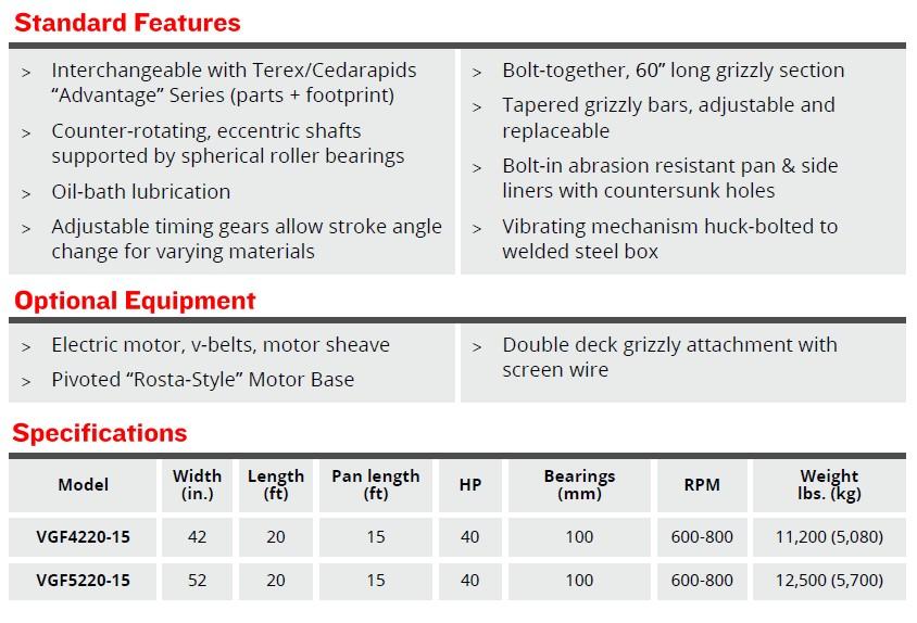 Spaulding Vibrating Grizzly Feeders (VGF4220-15)